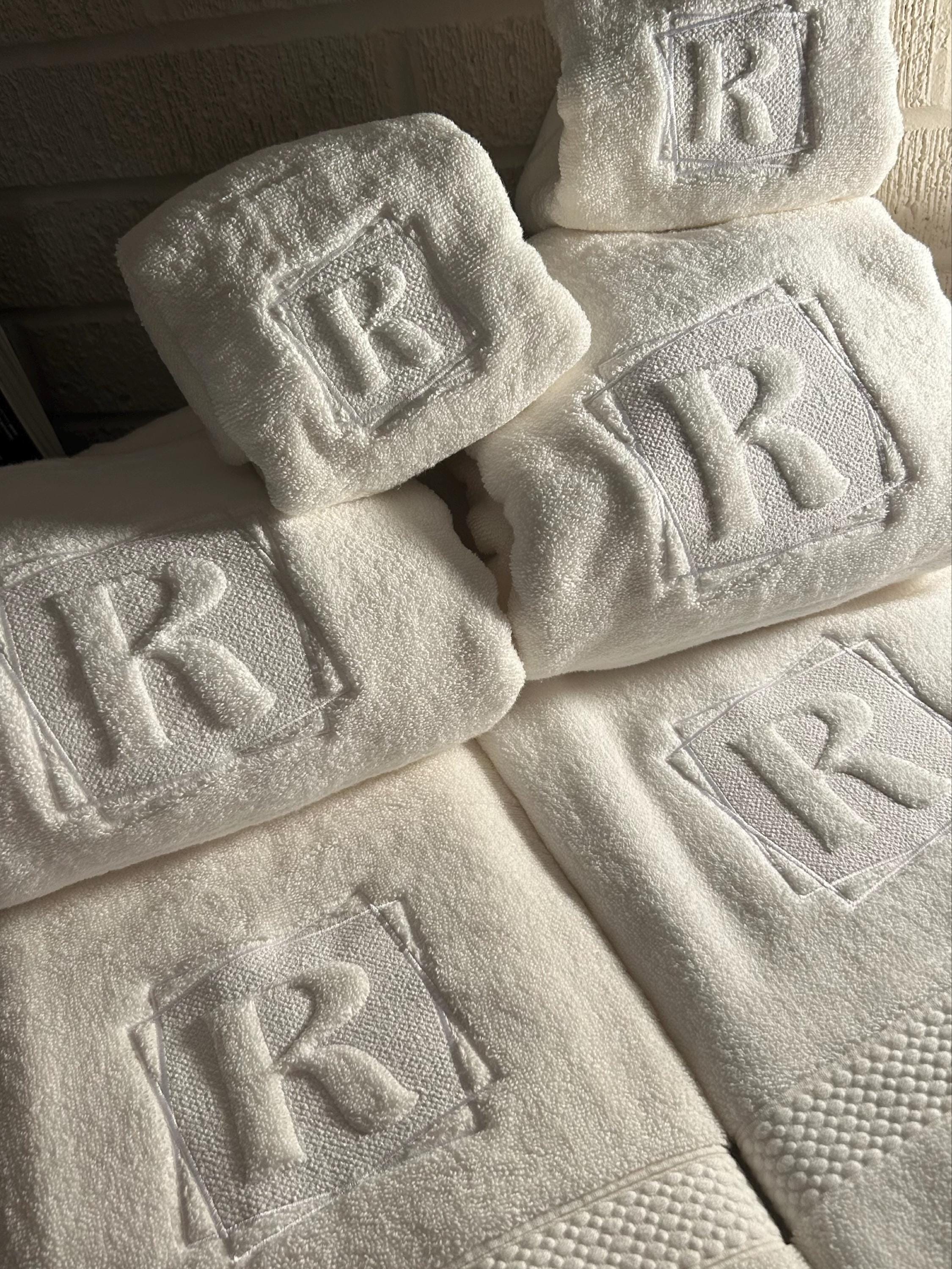 Embossed Monogram terry towel machine embroidery designs A-Z in assorted sizes personalized gift idea housewarming wedding home kids family