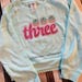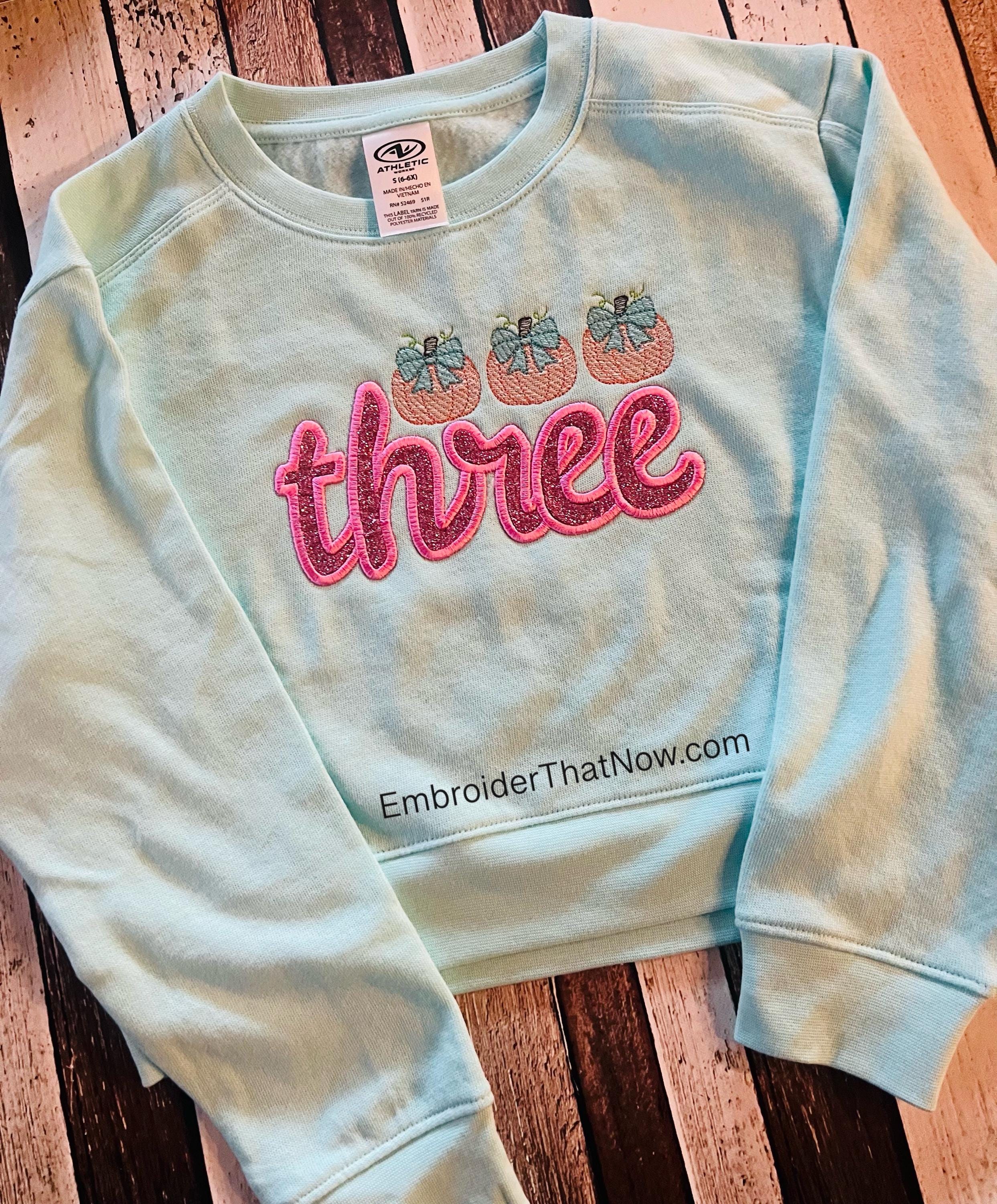 Written Three Birthday number three 3 applique machine embroidery designs in assorted sizes, word number three kids Third birthday party